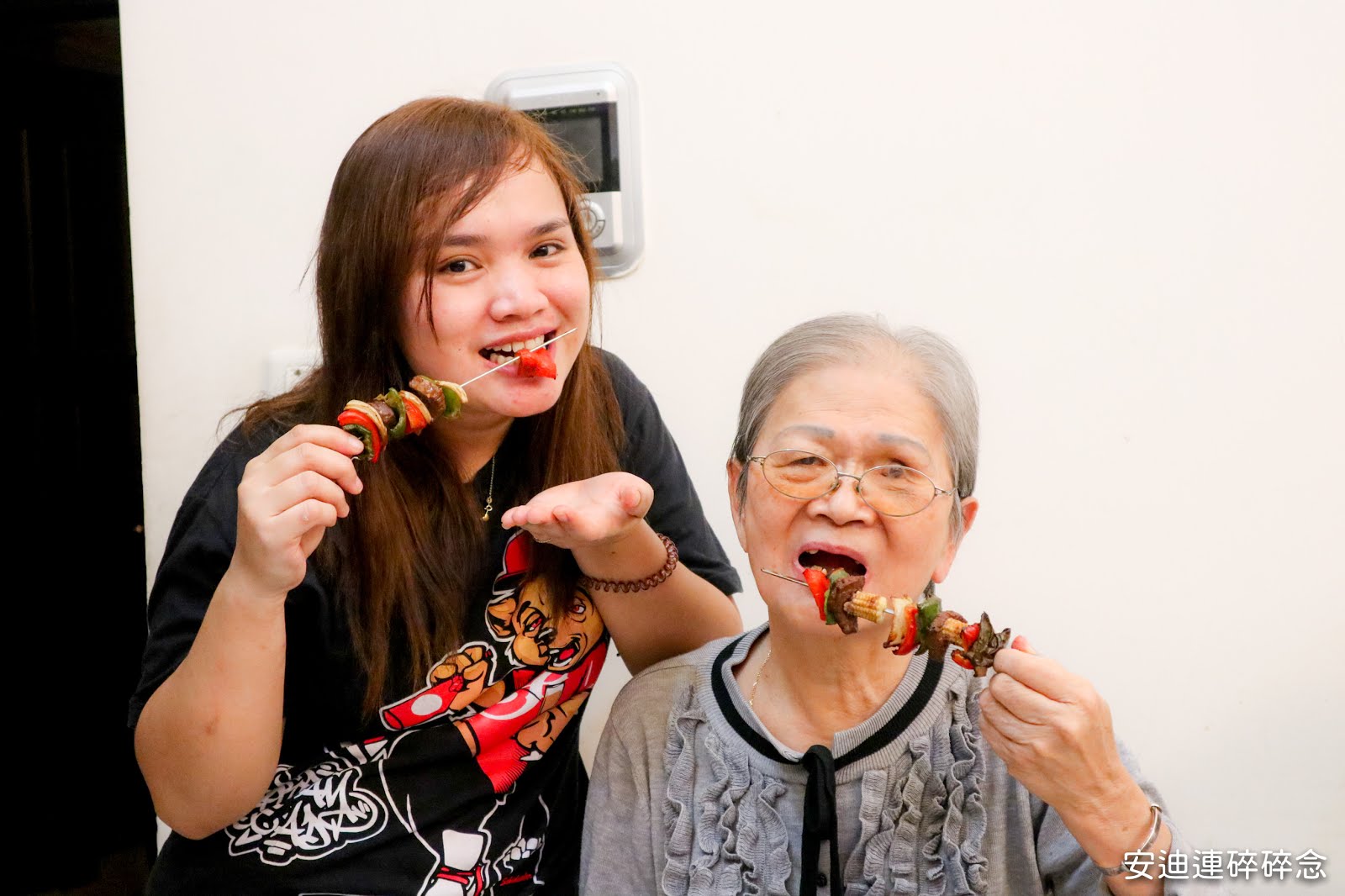 食材串上串燒架可以360度自動轉烤,很方便喔!