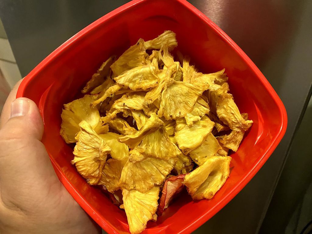 經過一個晚上的睡眠時間隔天一早就可以收成,果然還是自己做的果乾好吃。
