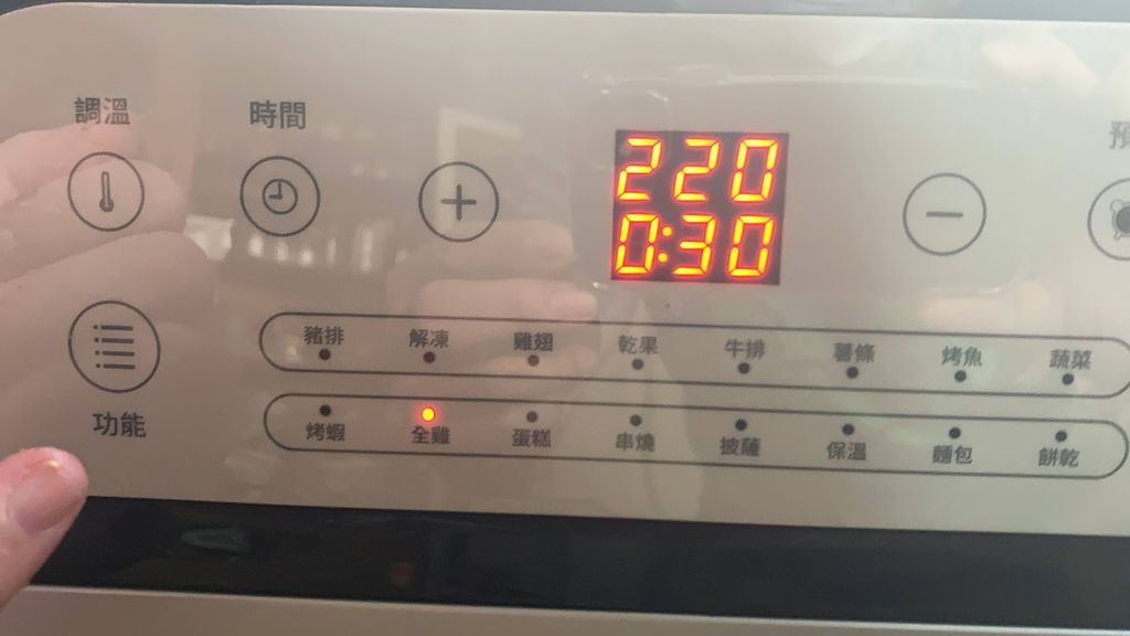 置入烤箱選擇烤全雞模式 220度30分鐘,就可以等待烤全雞的誕生了。