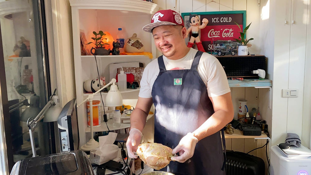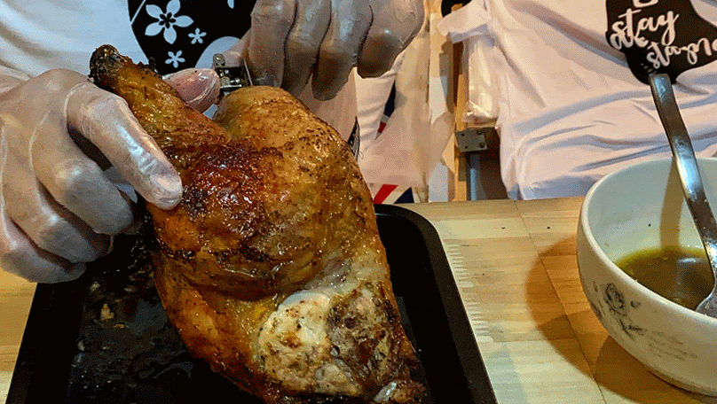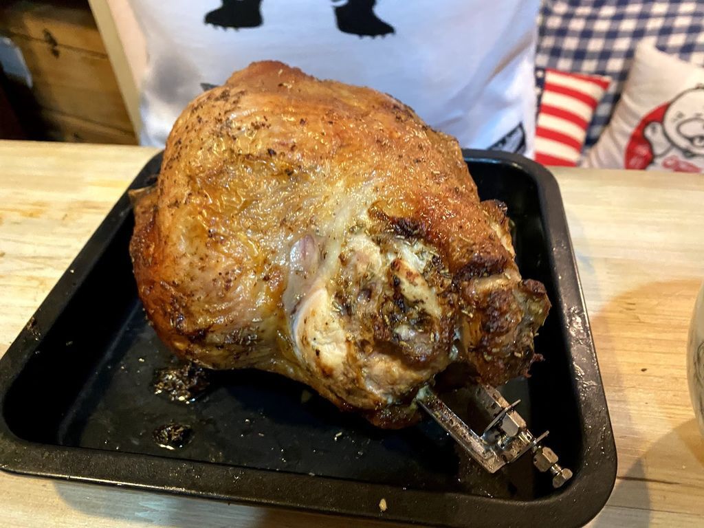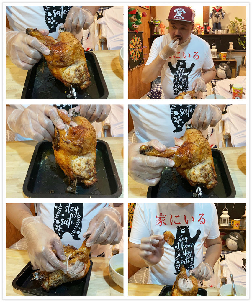 你看看那個肉汁,脆皮烤雞香嫩多汁!以後不用再拼命生火了,中秋節也可以在自己家裡烤肉。