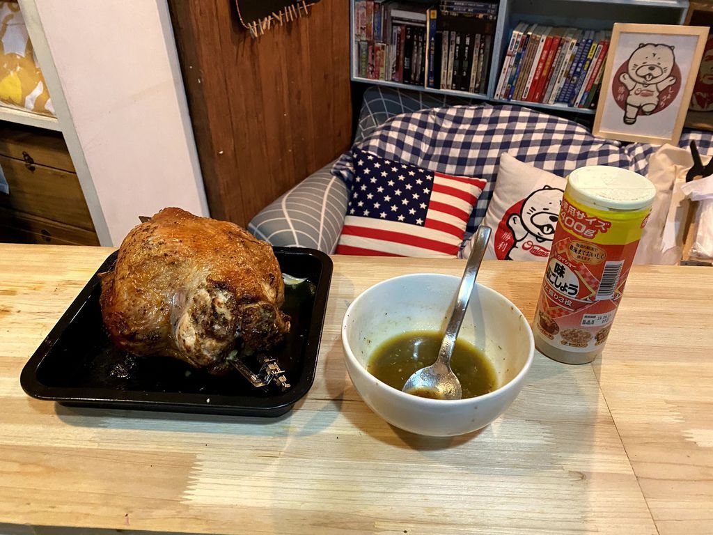 後來發現這次COSTCO 公雞有點太大雞翅太長會卡住,所以索性把雞翅取下,這樣烤起來還是相當的鮮嫩,兩隻熊撕開酥脆雞皮大口吃肉十分過癮。