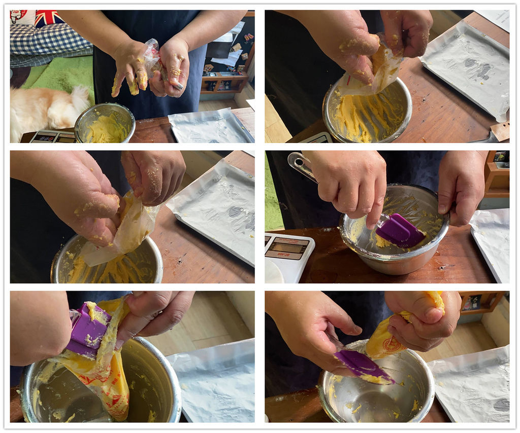 把捏均勻的麵體放進擠花袋中,準備開擠~~~~