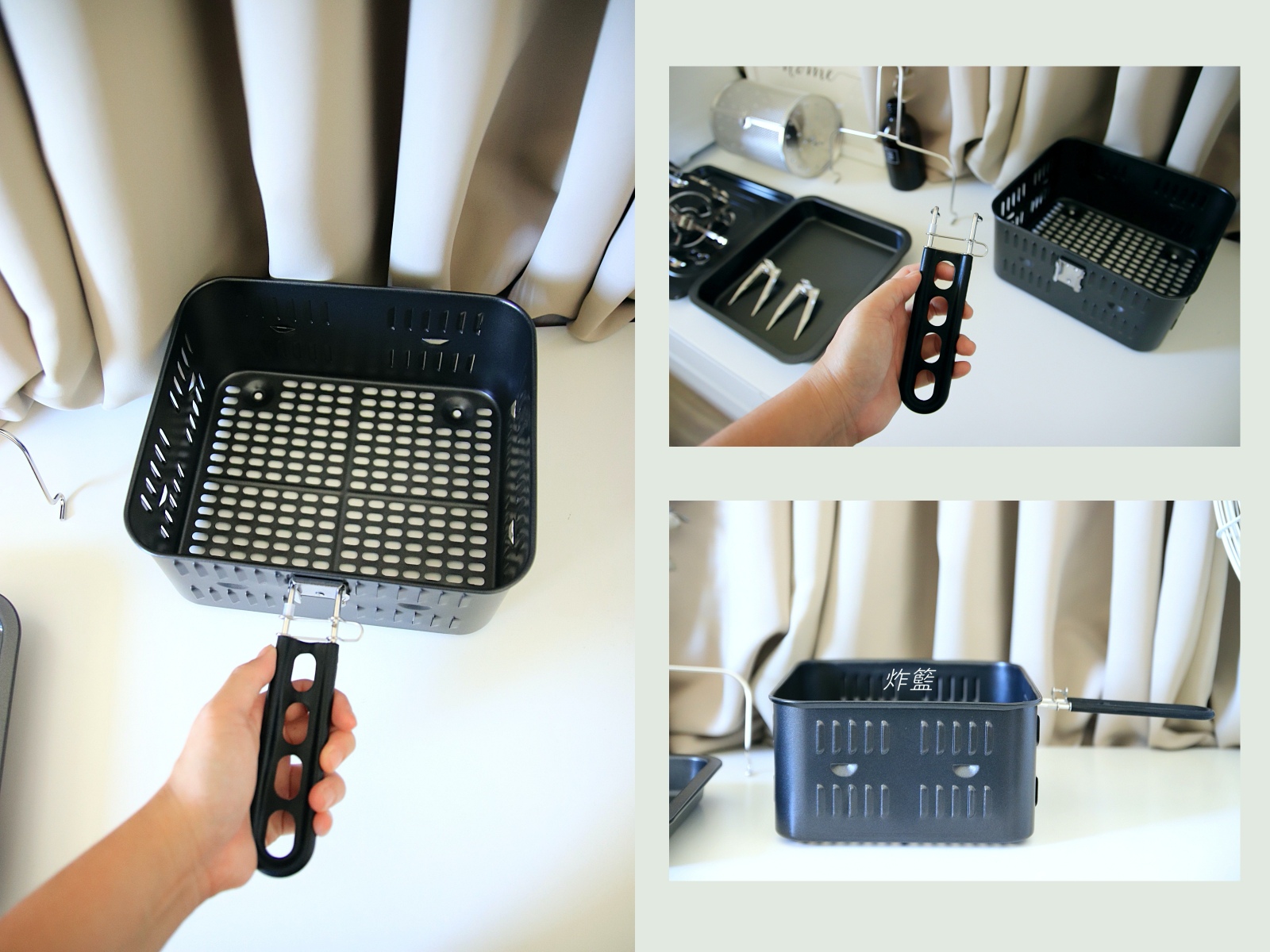 其中炸籃的把手還做了分離式設計,放進氣炸烤箱裡、取出時都很方便,輕輕按壓便可輕鬆脫離!