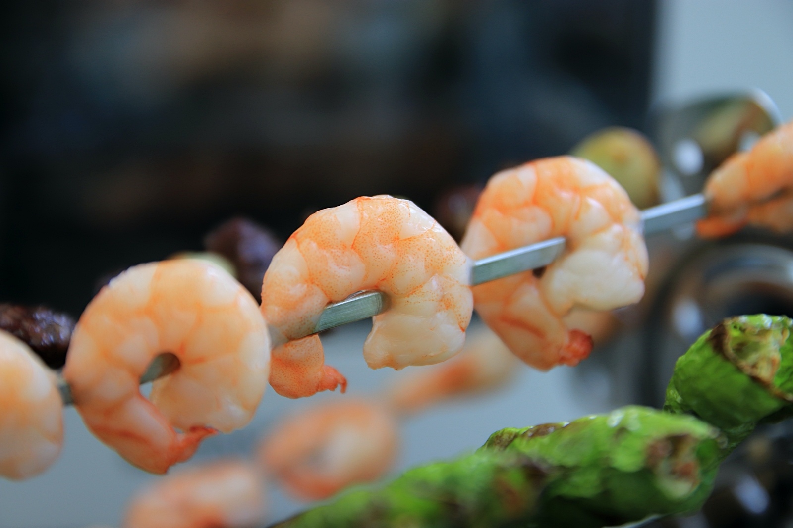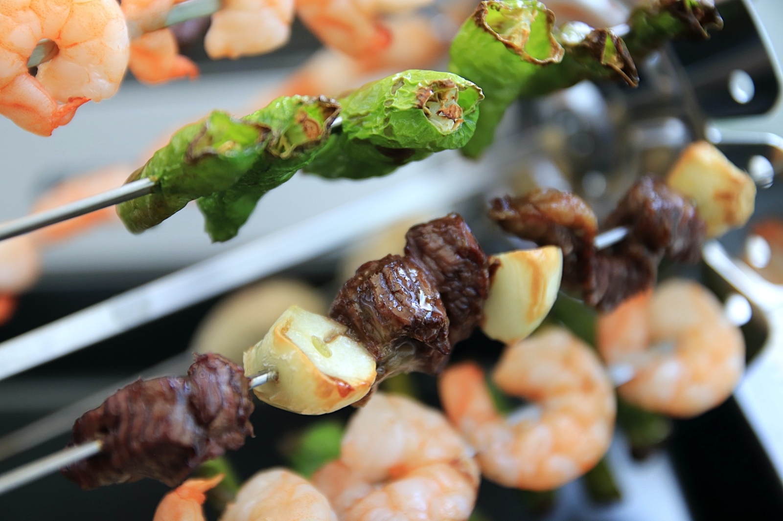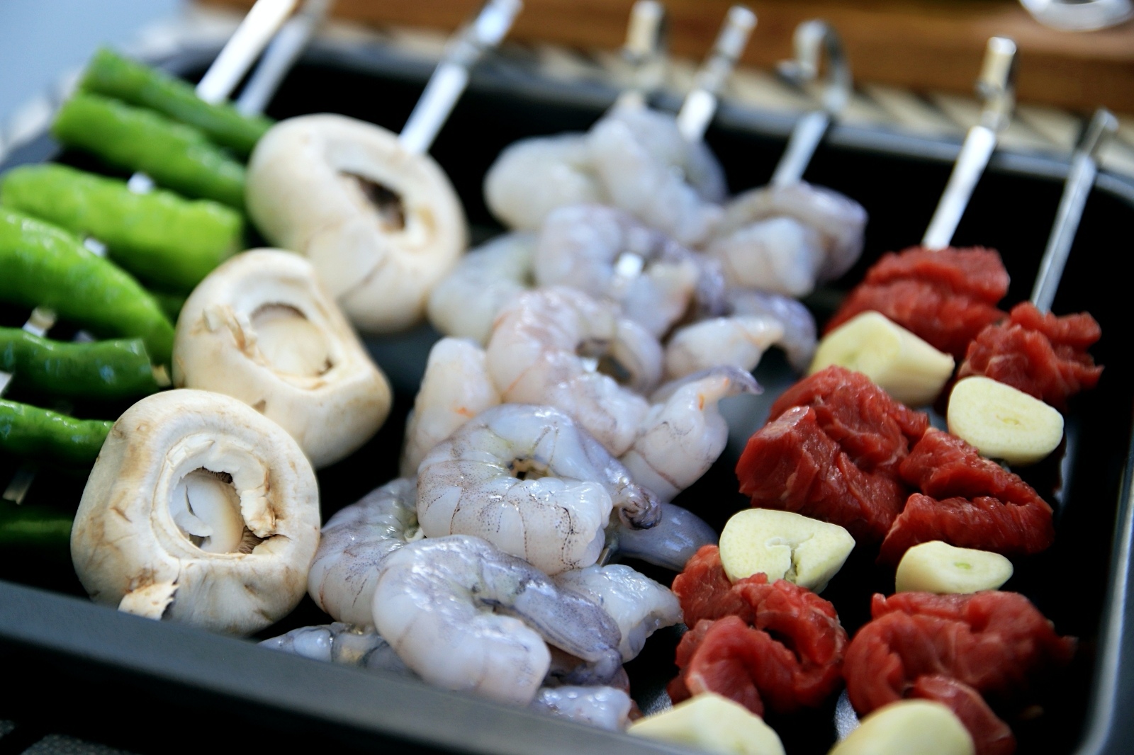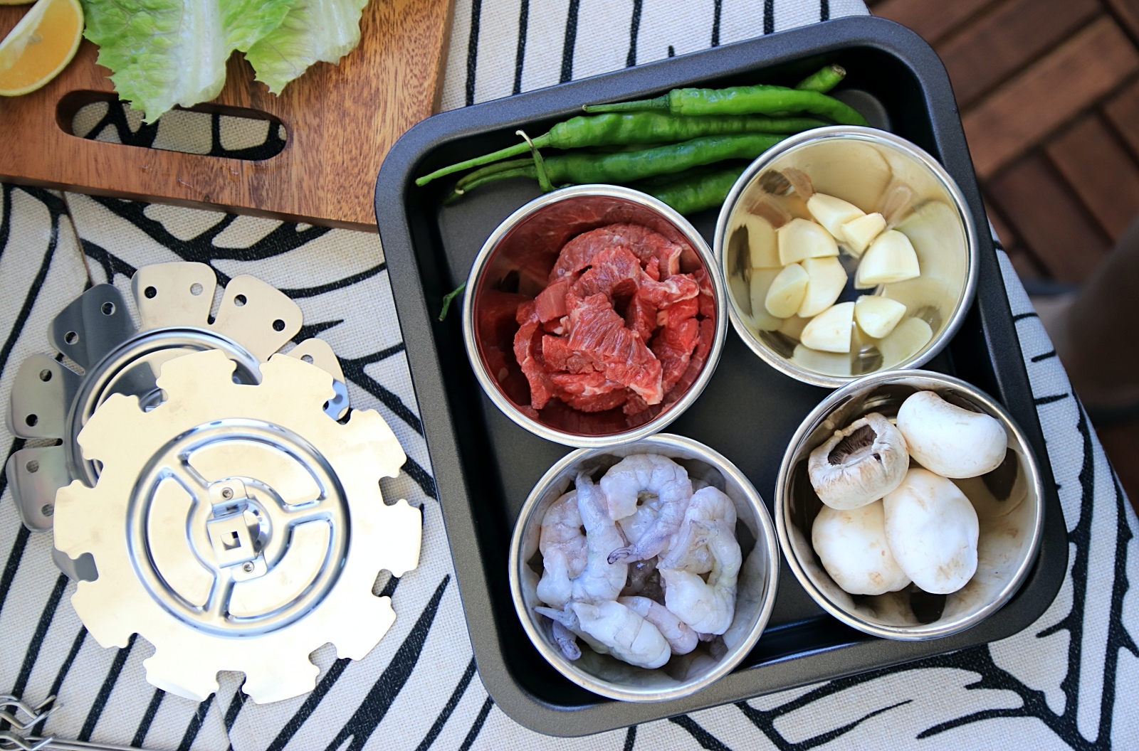 只要準備好食材,隨時都可以烤!在這裡就為大家示範,我們倆最愛的組合:牛肉、蝦子、蘑菇、青龍