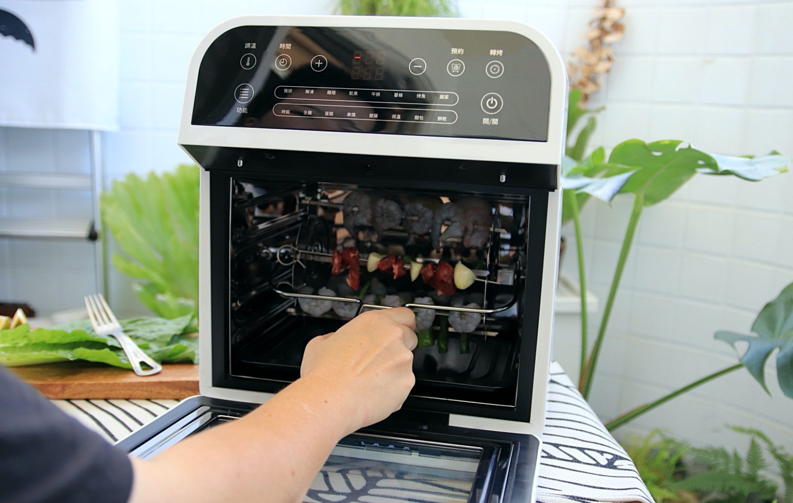 因此我們一直在觀察、研究,可以「轉烤」的烤箱、氣炸鍋,甚至最好能一機搞定多種功能(如炸、蒸、烤、煎、烘等)~