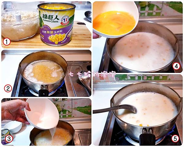 4.玉米濃湯:馬鈴薯、玉米粒、牛奶、雞蛋