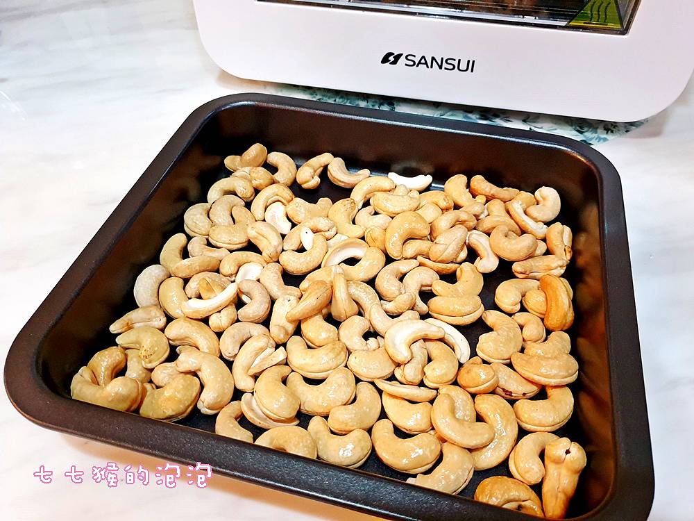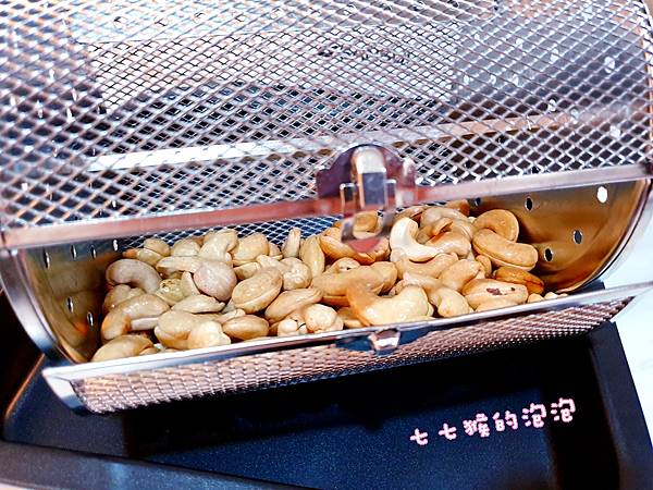 將腰果放進轉籠裡,先用80度轉烤10~15分鐘,風乾水分。
