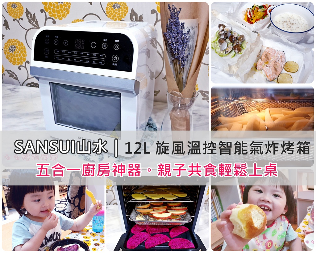 看完七猴的菜單和介紹,是不是覺得原來料理並不困難,也沒想像中麻煩,其實只要選對小幫手,就能事半功倍!現在有了這台山水氣炸烤箱,蒸、烤、煎、炸、烘各種料理方式通通可以自由變化,低技術高成就,我也更樂於下廚,和雙妞一起親子共食,減少外食,讓她們留下更多媽媽的味道。