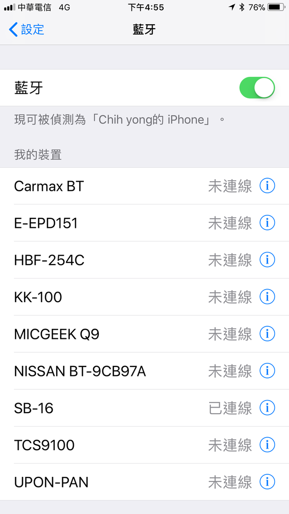 手機先開到藍芽(SB-16)準備抓取Sansui山水藍芽