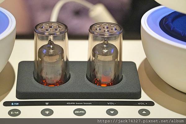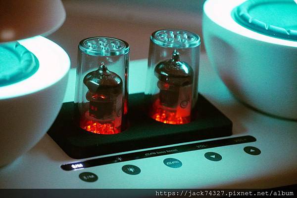 「山水 真空管藍芽音響」開機的時候,即使關掉了喇叭上頭的LED燈光,真空管也會散發出微微的紅光,增添不少復古風味,也別有一番風情。
