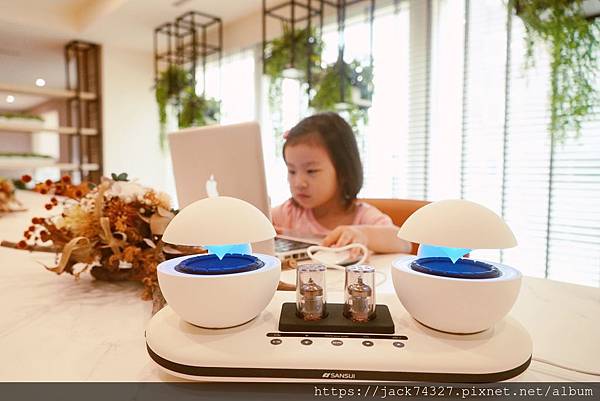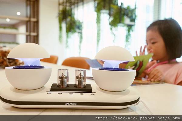 在遊戲區裡,也可以放上「 山水 真空管藍芽音響 」,不管是要抒情、古典、還是偶爾來個兒歌也很不錯。