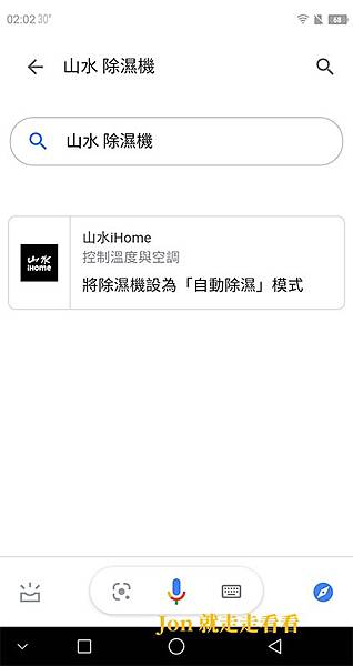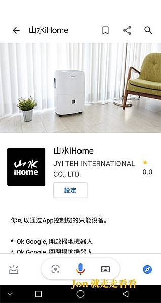首先開啟「Google Home」APP之後直接在搜尋框輸入“山水 除濕機”,就會出現「山水iHome」的設定選項