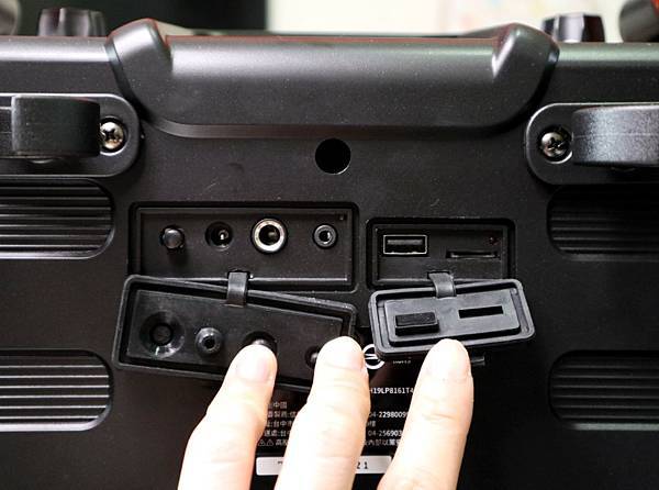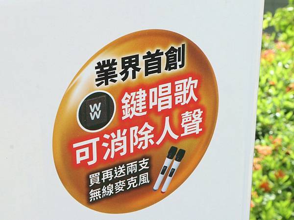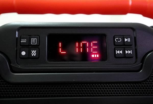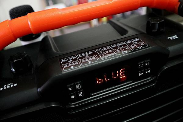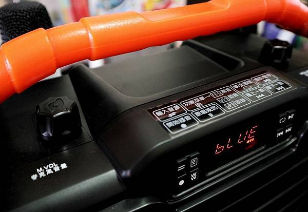 可以通過控制面板上的按鍵,快速切換輸入訊號源/原唱/消除歌曲人聲/錄音等多種模式,內含調整高低音與麥克風回音、麥克風優先、切換提示音語言、甚至包括一些演唱模式效果,切換功能時還會有貼心的中文語音提示。使用左右兩邊的旋轉鈕,可以調整麥克風音量和主音量。