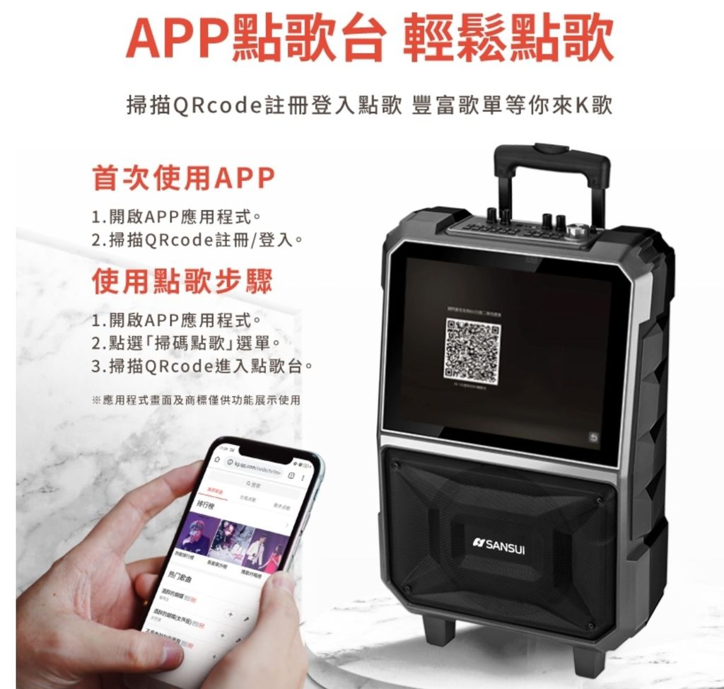 這次「SANSUI山水15吋觸控螢幕桿式行動KTV 型號SKTV-T888」 也將改變大家的歡唱習慣,不管走到哪裡都可以盡情的歡唱。