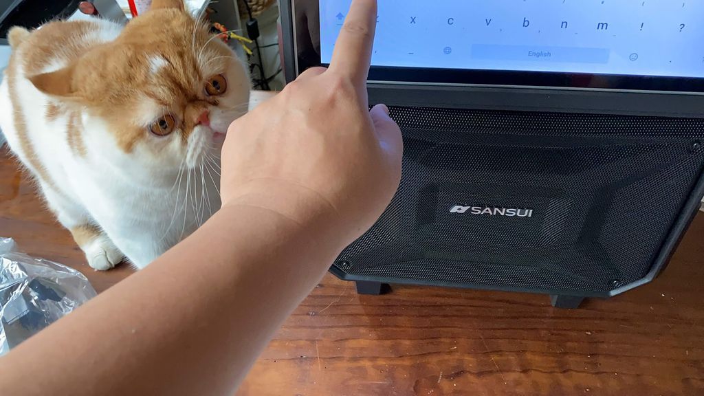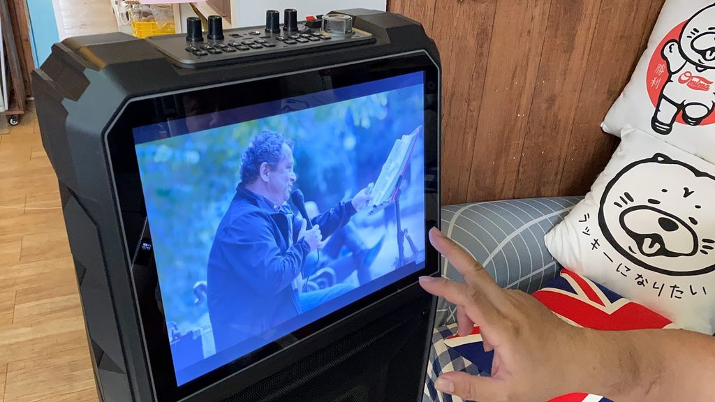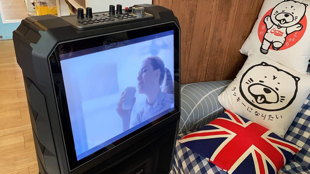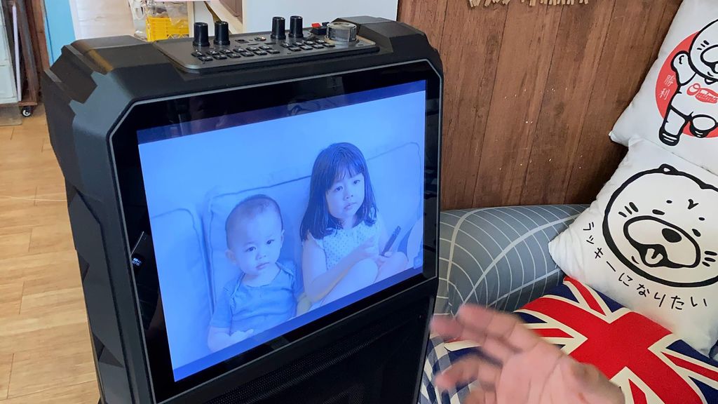 「SANSUI山水15吋觸控螢幕桿式行動KTV 型號SKTV-T888」螢幕很大,很適合老年人操作,色彩逼真。