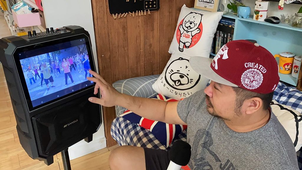 只要拉著「SANSUI山水15吋觸控螢幕桿式行動KTV」在公園裡變成目光聚集的焦點,一邊下棋一邊聽廣播看新聞滋潤滋潤小日子也很有滋味。
