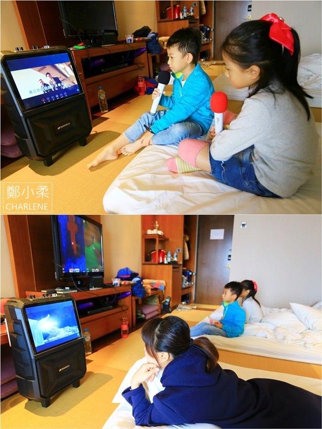 小孩玩電動,大人可以用SANSUI 山水 15吋觸控螢幕拉桿式行動KTV(SKTV-T888)來追劇,真是深得我心,