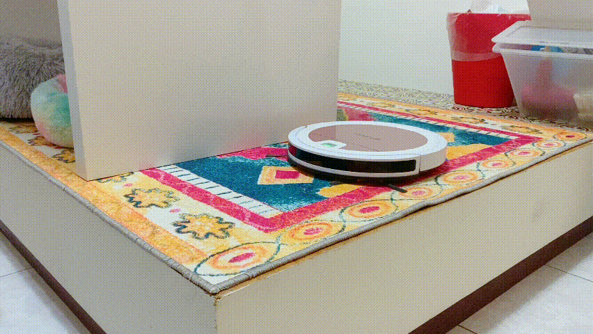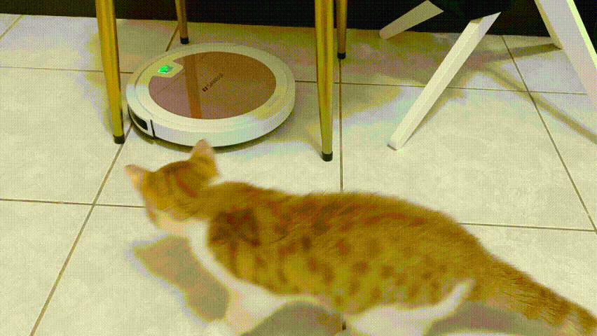 也因為它機身很薄,除了在沙發底下或桌子下來去自如外,即使有時被絆住也能速速自己找到出路得救。唯一比較麻煩的就是看到邊刷纏頭髪時潔癖狂會有點怒哈哈,記得要常清除!機器人前方的紅外線感應好聰明,在階梯邊邊會感應到危險自己停止往前