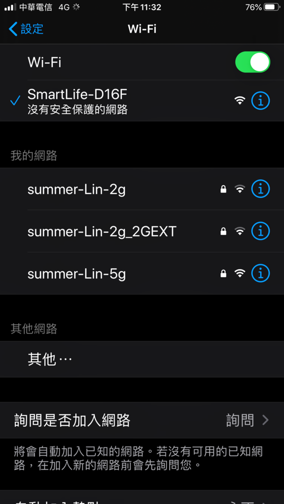 進入連線設定,當然還是要選擇 SmartLife-D16F無線網路 網路才可以