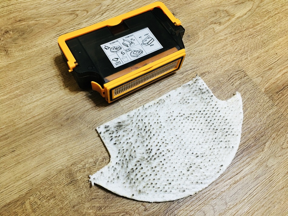 所以您會發現在機器人底部有一片超細纖維抹布