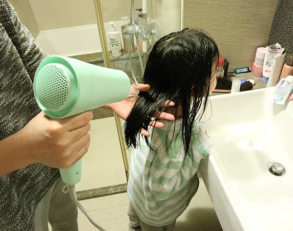 女兒開始抗拒起洗完頭後吹乾頭髮這件事